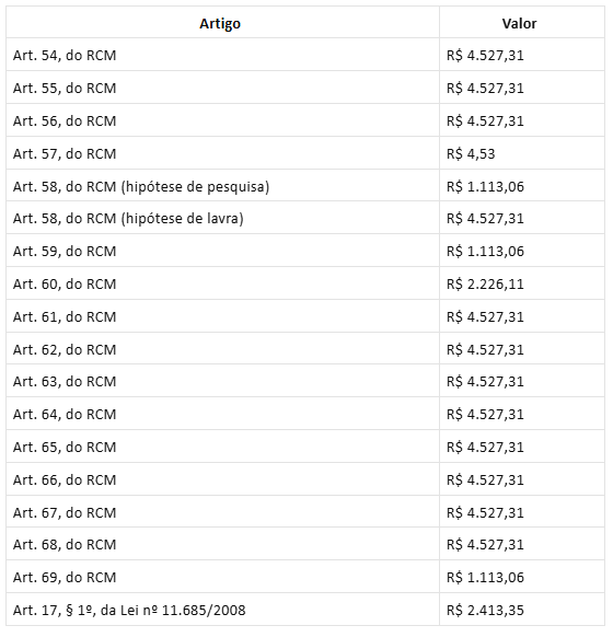 Art. 22, inciso V, do Decreto-Lei 227/1967 (Código de Mineração) | R$ 2.126,50 | R$ 1.063.250.089,61 |