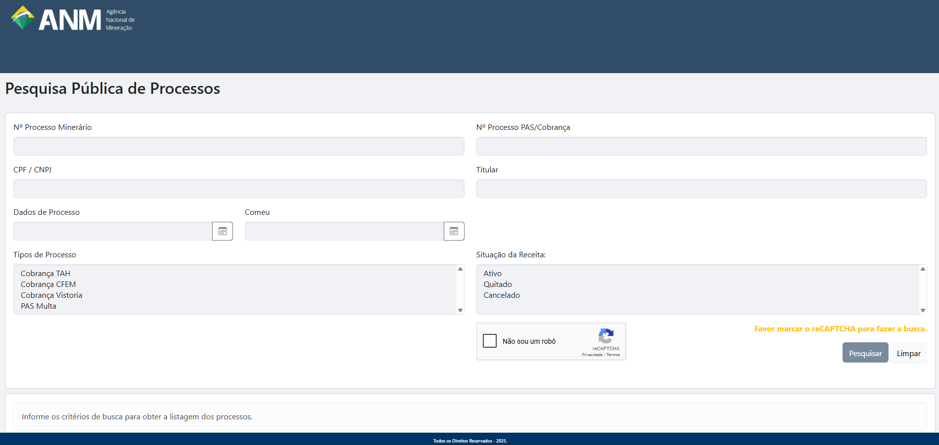No portal, é possível realizar pesquisas detalhadas por número de auto, CPF ou CNPJ, processo minerário e situação da receita. As consultas incluem dados sobre cobranças de TAH, andamento de processos sancionadores, infrações aplicadas e outras informações relacionadas à fiscalização e arrecadação da ANM.