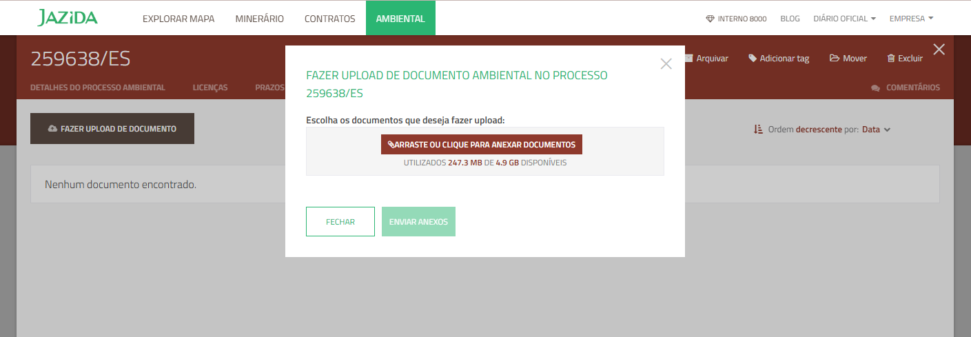 - Gestão Centralizada de Obrigações no Módulo Ambiental: O Módulo Ambiental do Jazida permite a gestão de documentos e obrigações, como o próprio PAEBM, o Relatório de Conformidade e Operacionalidade (RCO), a Declaração de Condição de Estabilidade (DCE) e, crucialmente, a Declaração de Conformidade e Operacionalidade (DCO). Você armazena todos esses documentos de forma segura e organizada, garantindo que o acervo técnico esteja sempre pronto para auditorias e fiscalizações.
