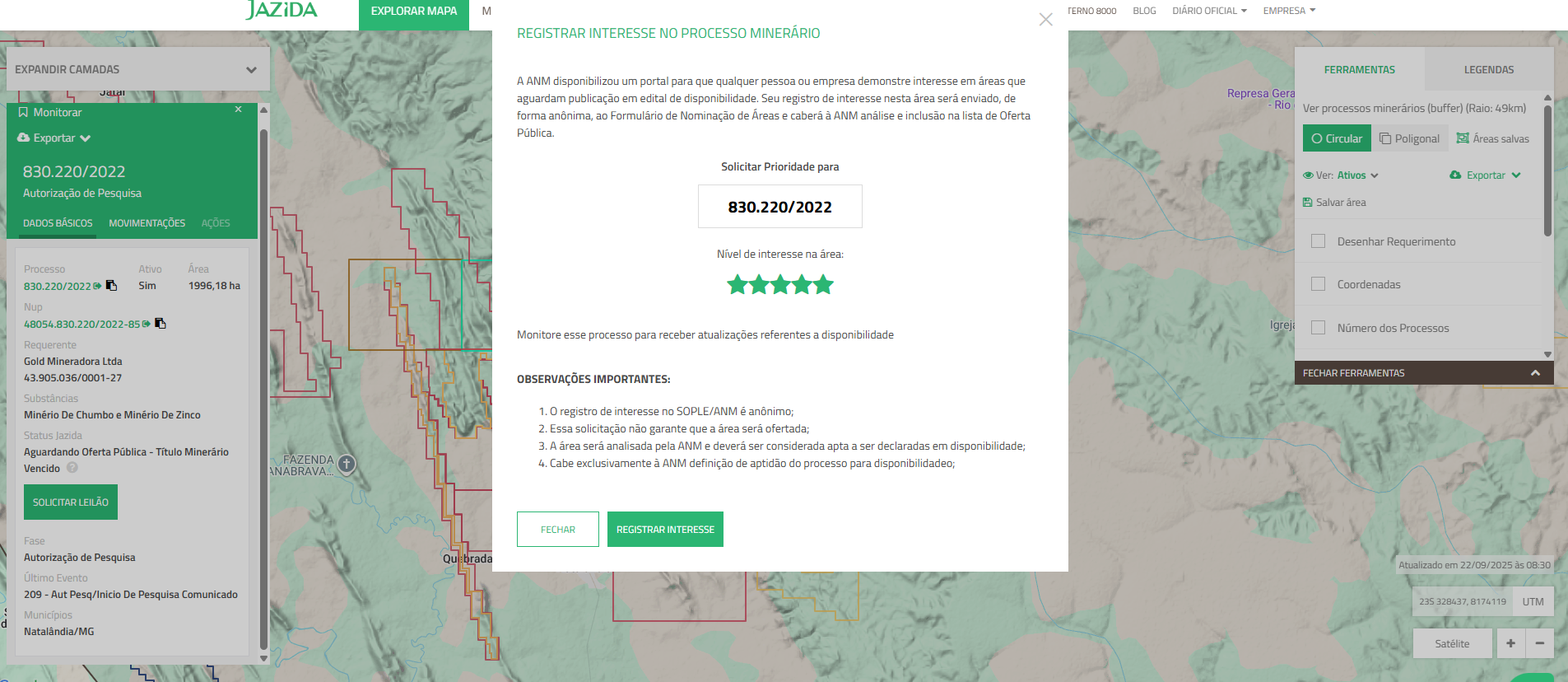 - Integração Jazida.com - SOPLE: Solicite a inclusão de área em Edital de Disponibilidade da ANM