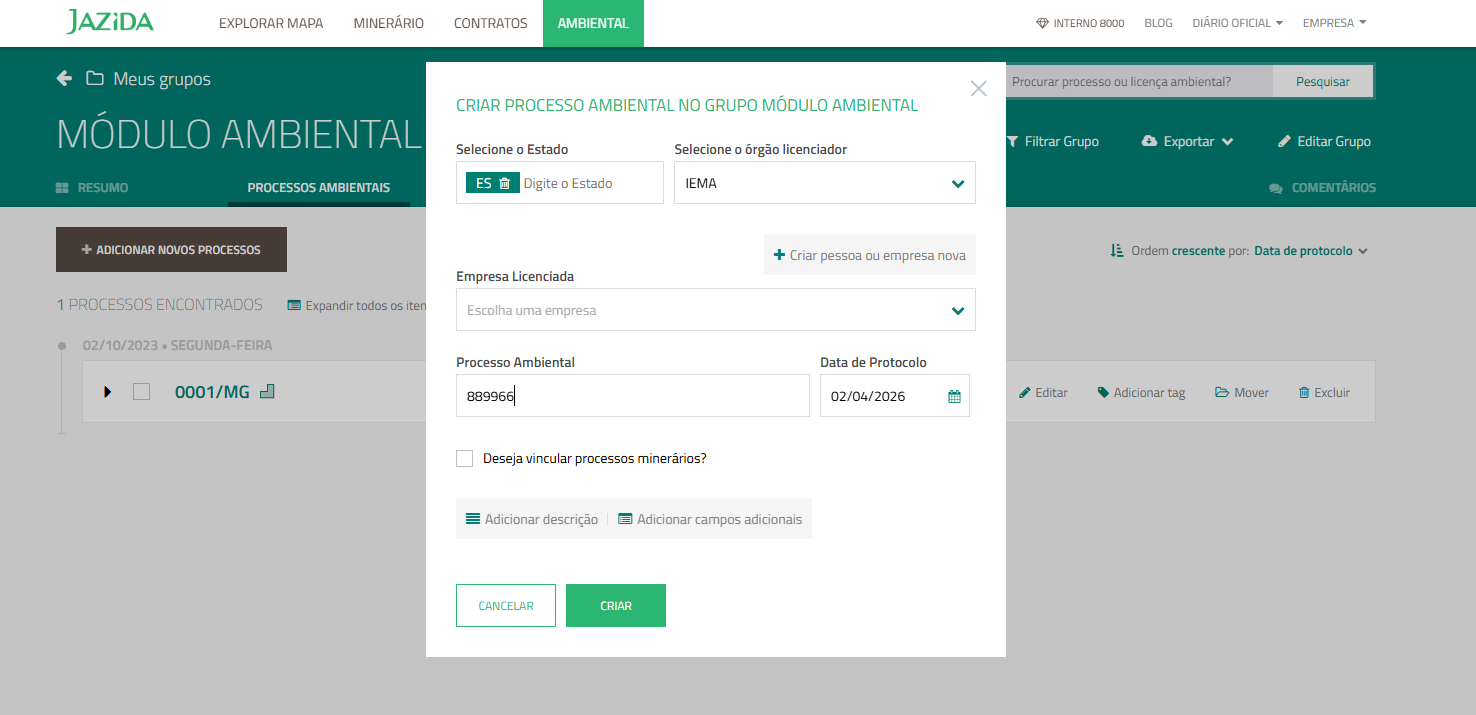 O módulo ambiental do Jazida foi desenvolvido para integrar a gestão ambiental à realidade operacional do empreendimento.
