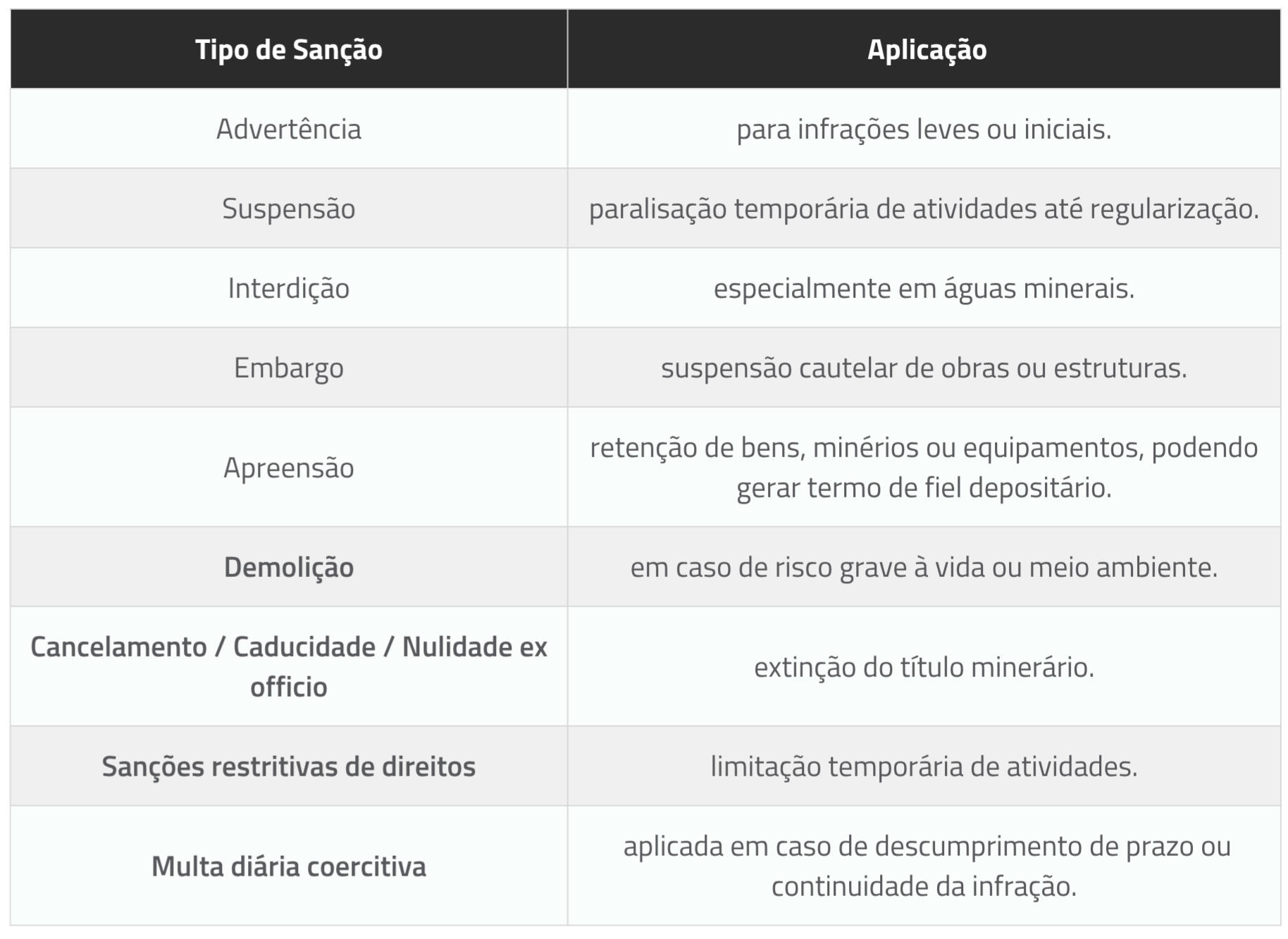 - Infrações na lavra, fechamento de mina, segurança de barragens, impactos a terceiros e riscos a vidas humanas.